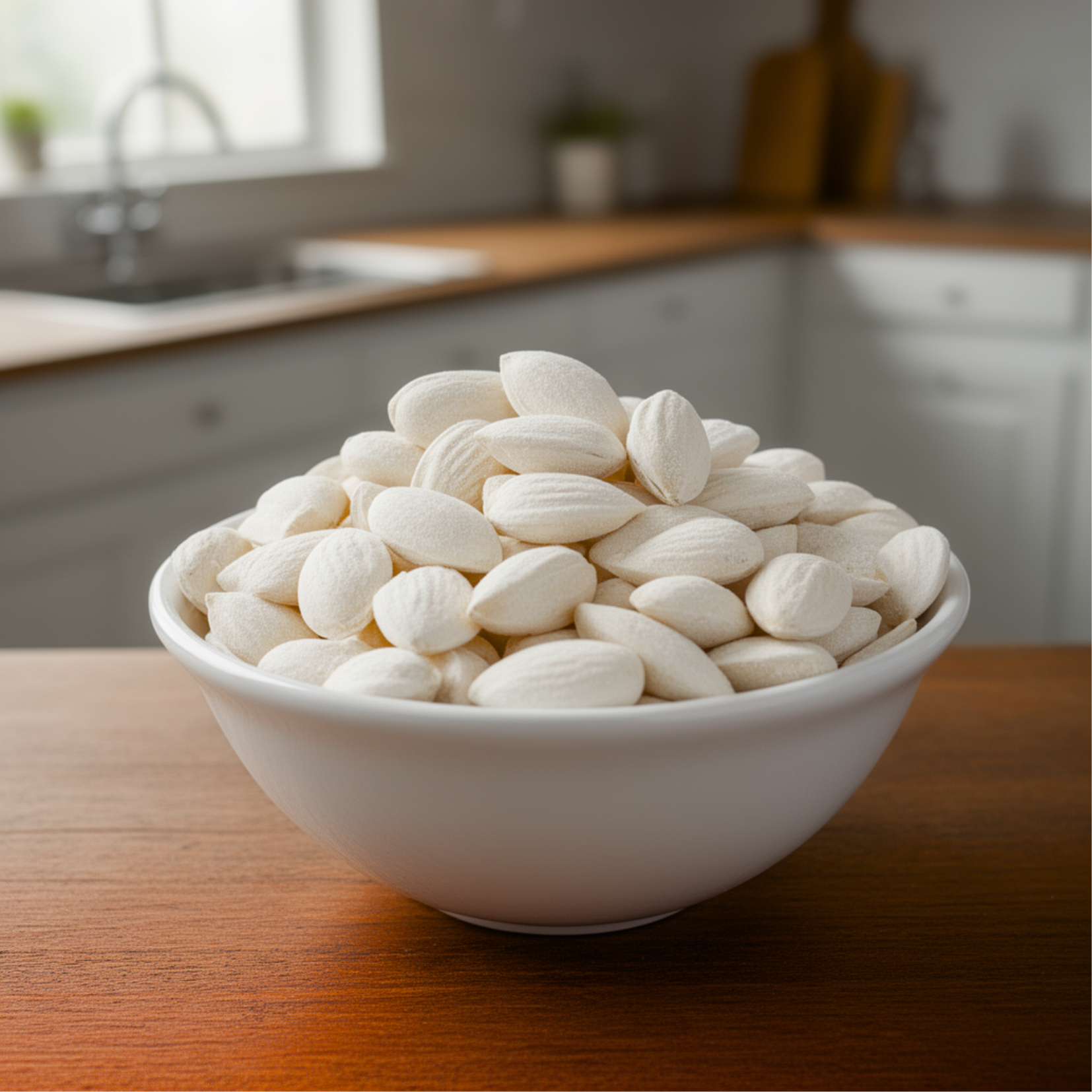 L’amande blanche extra est une amande soigneusement émondée, sélectionnée pour sa grande taille, sa blancheur uniforme et sa qualité supérieure. Elle est très appréciée en pâtisserie fine et en confiserie pour son goût délicat et sa texture fondante après transformation.