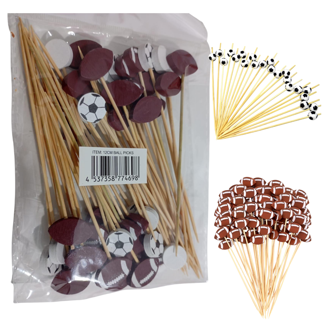 Piques à cocktail motifs sportifs – Soccer & Football Américain