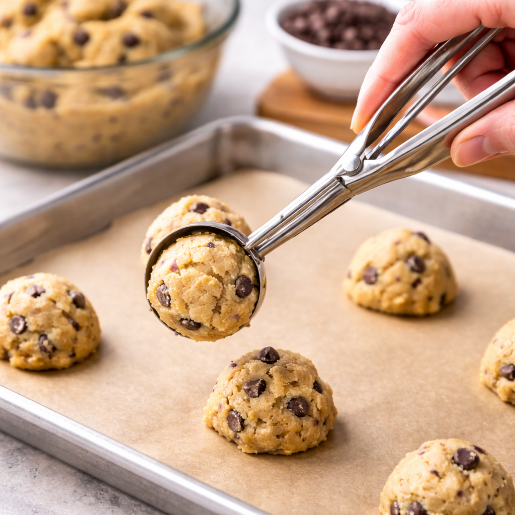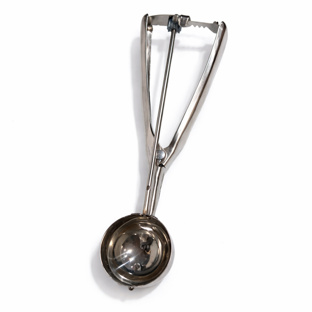 Cette cuillère portionneuse en acier inoxydable est idéale pour former des boules régulières et uniformes. Grâce à son mécanisme à ressort intégré, elle libère facilement la préparation sans coller.