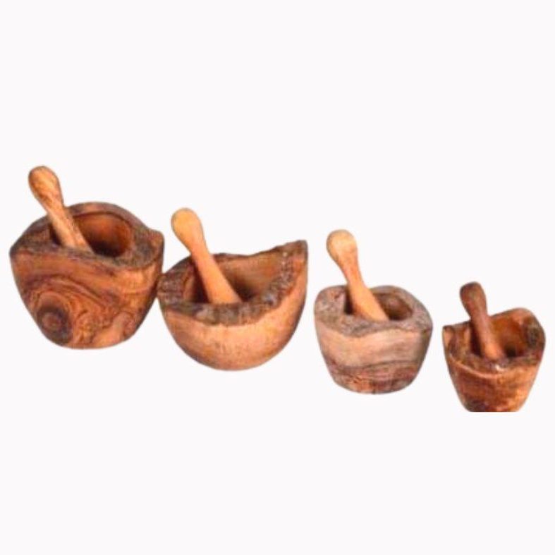 MORTIE ET PILON 8 AVEC MANCHE EN BOIS D'OLIVE FAIT MAIN 100% BIO.